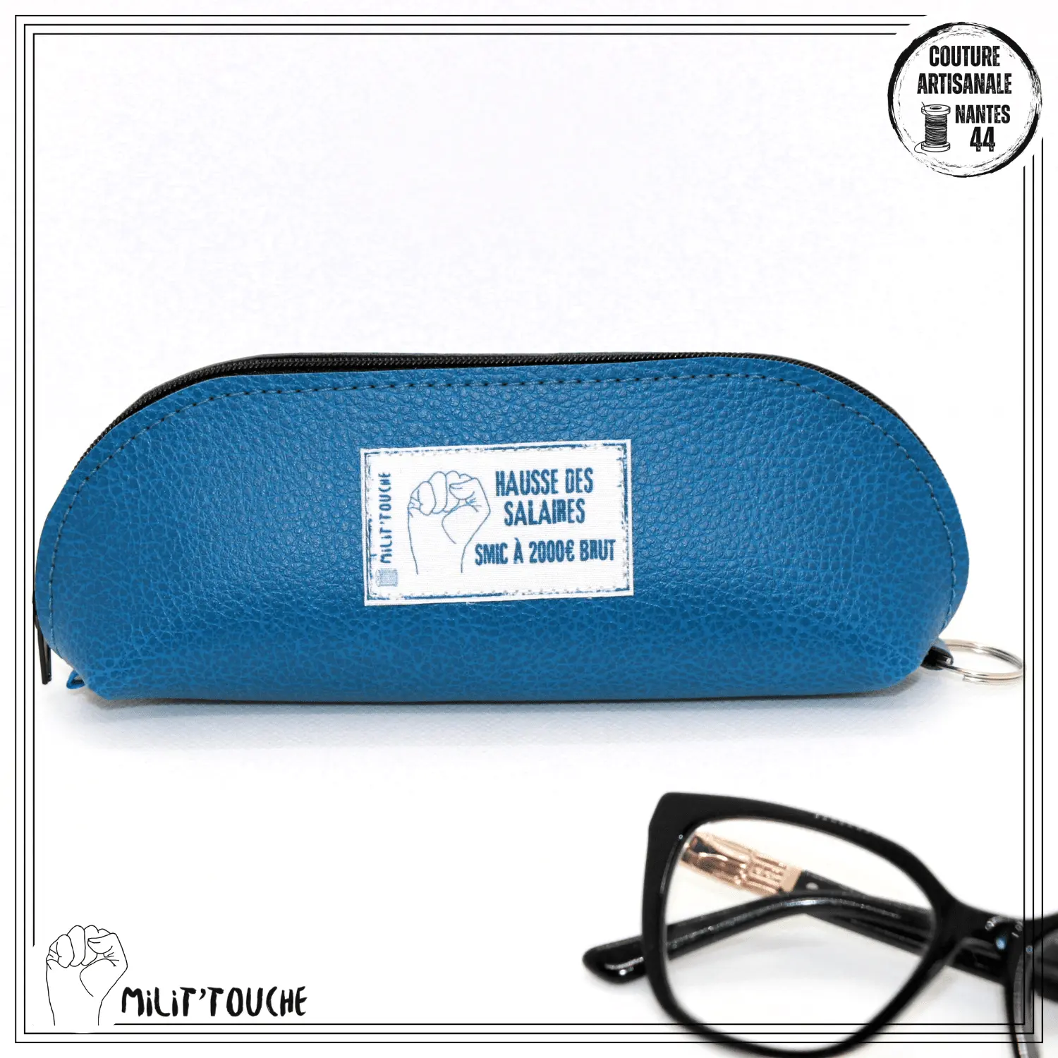 Étui à lunettes rigide bleu canard – HAUSSE DES SALAIRES, SMIC A 2000€ BRUT
