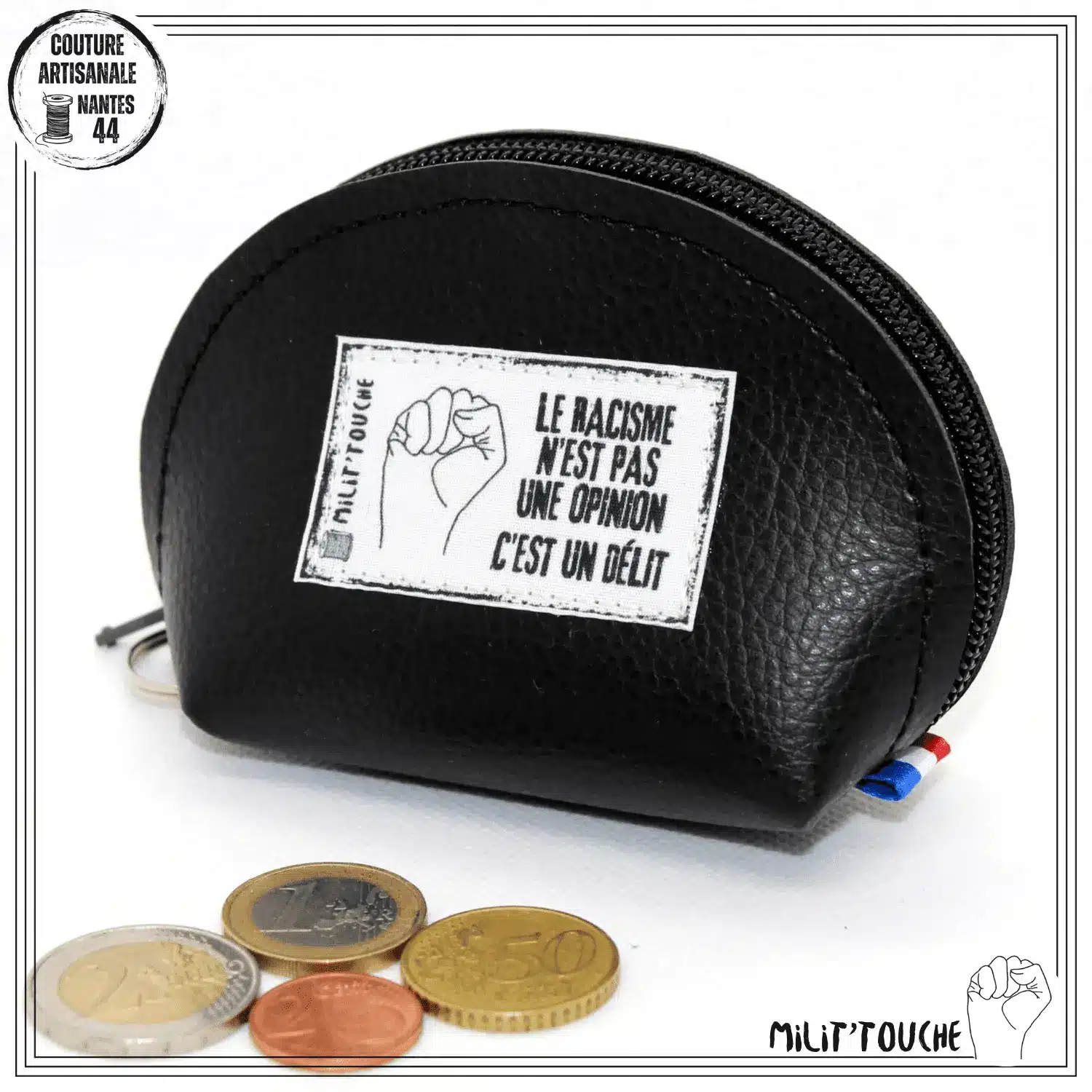 porte monnaie simili noir le racisme n est pas une opinion c est un delit 1Porte-monnaie rigide noir – LE RACISME N’EST PAS UNE OPINION C’EST UN DÉLIT