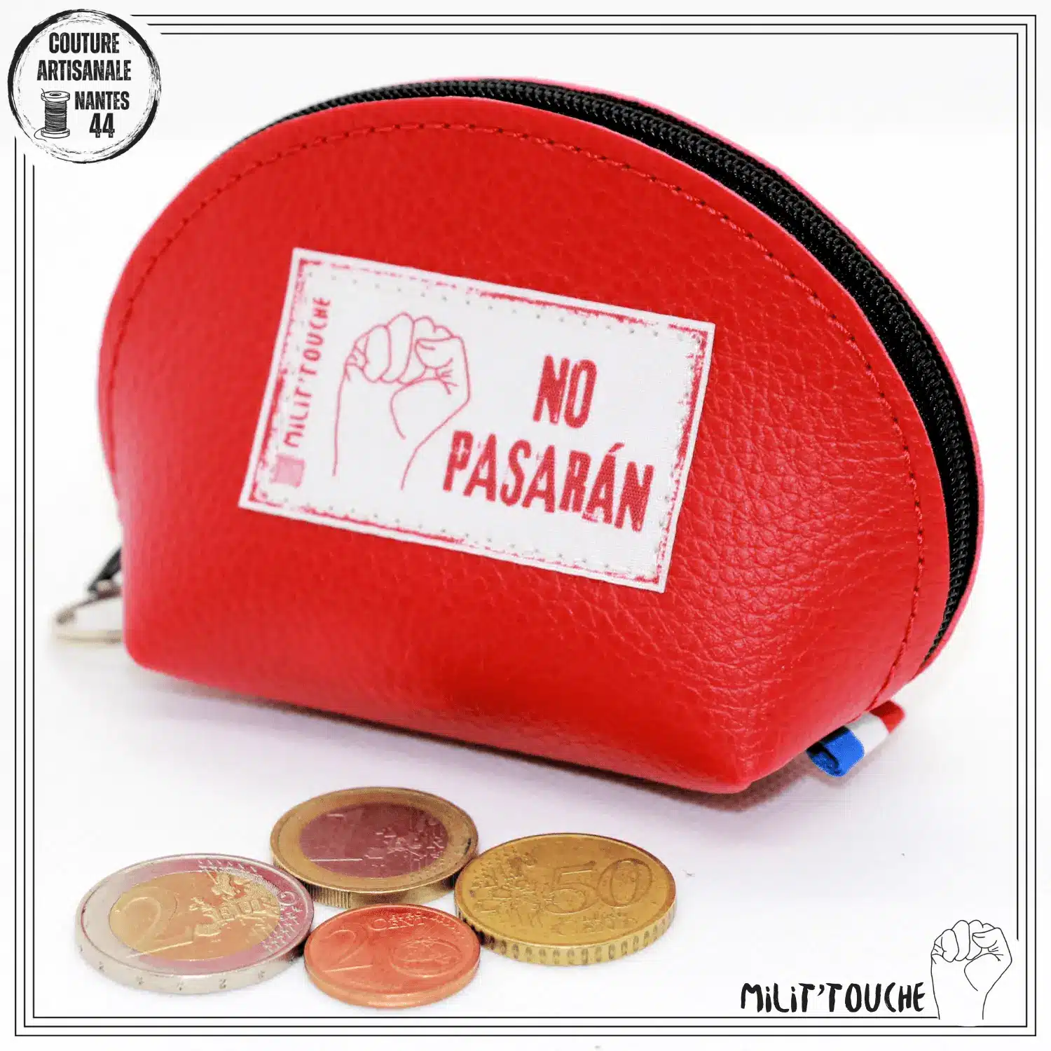 porte monnaie simili rouge no pasaran 1Porte-monnaie rigide rouge – NO PASARÁN