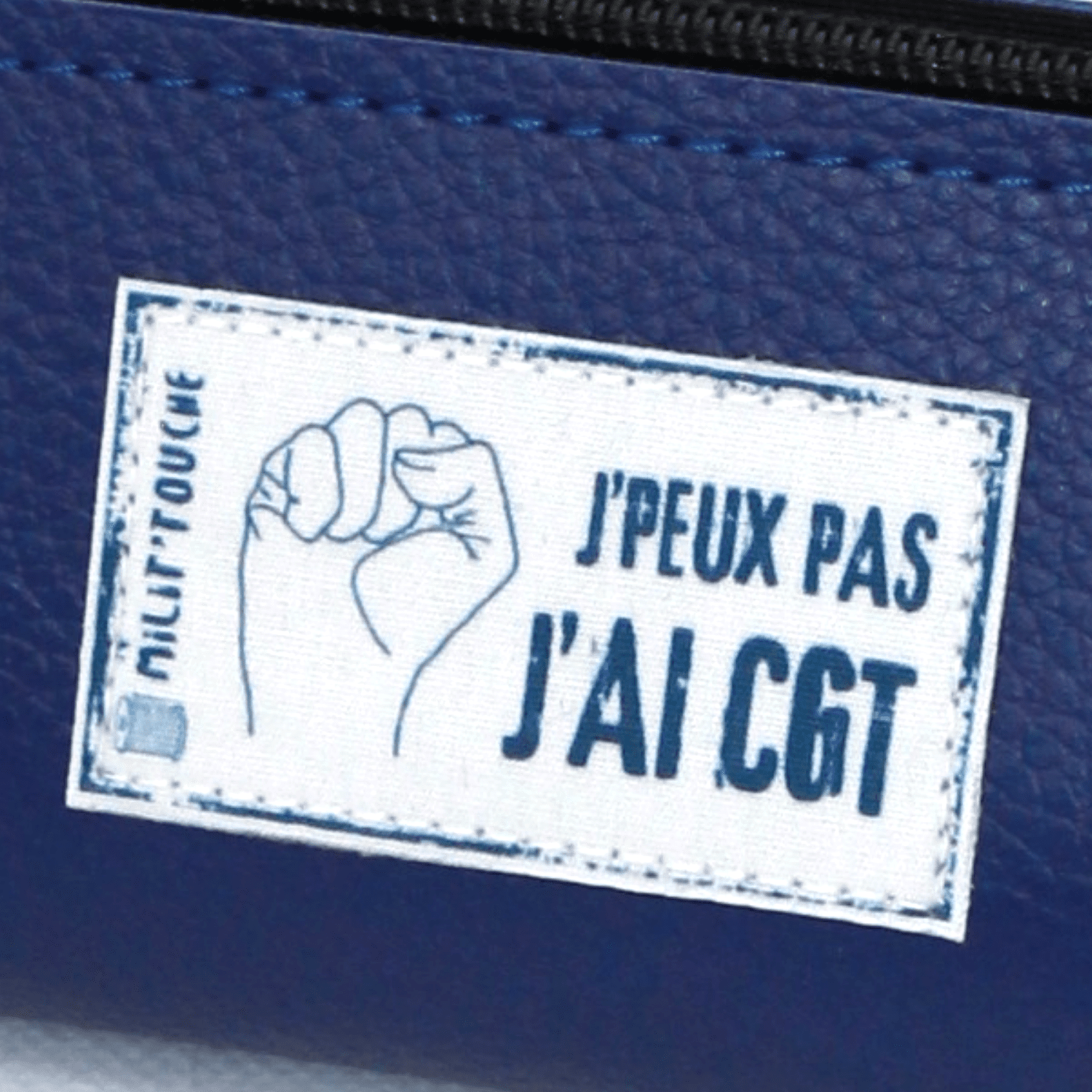 trousse bleu foncé "j'peux pas j'ai cgt"Trousse bleu foncé « J’PEUX PAS J’AI CGT »